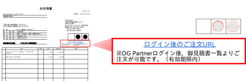 見積書右上の「ログイン後のご注文URL」またはマイページの「御見積一覧」からご注文ください。