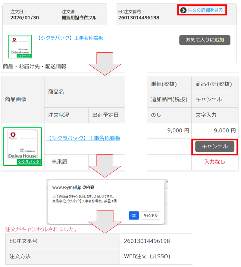 ご注文時の管理情報の変更について【大和ハウス工業様のみ対象】