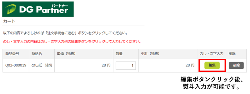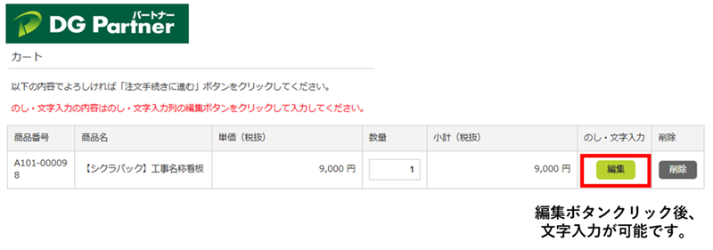 2. カート画面(または注文確認画面)にある「編集」ボタンを押してください。